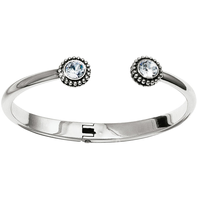 Introducing the Brighton Twinkle Open Hinged Bangle. Crafted with expert precision, this bangle features an open hinged design for easy wear. Its dazzling twinkle detail adds a touch of glamour to any outfit.