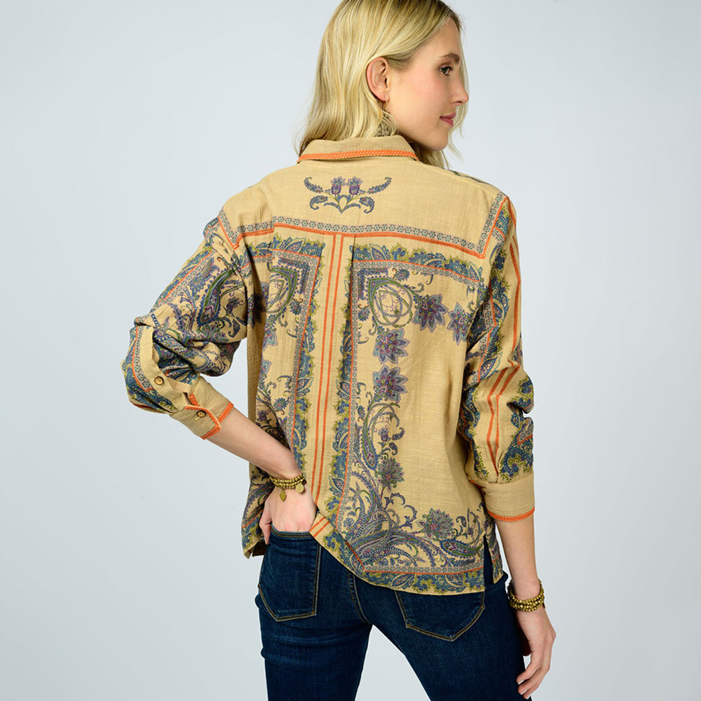 Ivy Jane Camel Paisley Border Shirt - S is backordered and will ship as soon as it is back in stock.