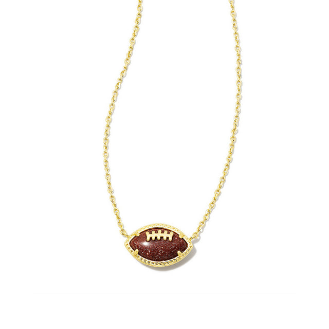 Kendra Scott Football Short Pendant Necklace Gold Orange Goldstone Crafted with elegant gold and vibrant goldstone, this necklace is a winning accessory that exudes sophistication and style.