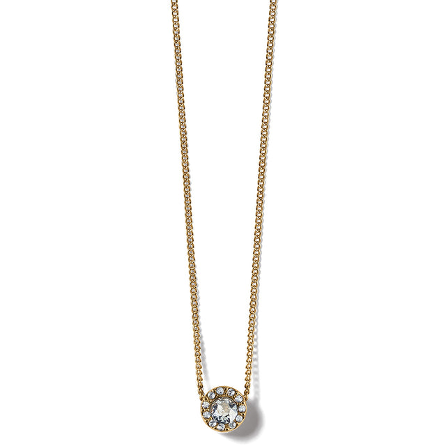 Experience the ultimate shine with the Brighton Illumina Mini Gold Solitaire Necklace. This stunning piece will elevate any outfit and add a touch of glamour to your day. Show off your unique style and make a statement with this beautifully crafted necklace.