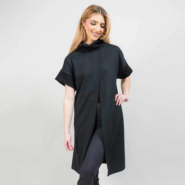 Elevate your wardrobe with the Trisha Tyler Black Split Front Topper, designed to support your personal style journey. This versatile layering piece features a modern split front that works beautifully over dresses, blouses, or casual tees—giving you endless styling possibilities. The timeless black hue pairs effortlessly with everything you already love wearing, making it a reliable companion for any occasion. Slip it on and feel the confidence that comes from looking polished and put-together, no matter where your day takes you.