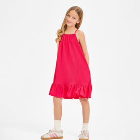 Take a walk on the fruity side with our Good Girl Cherry Ruffle Dress! This dress features an adjustable tie and ruffled details for a fun and flowy look. Perfect for any occasion, this dress will have her feeling pretty and spunky.