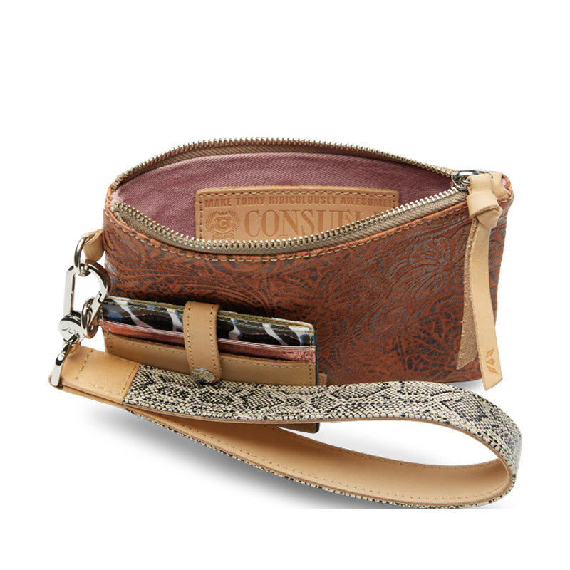 The Sally Combi by Consuela is a convenient way to carry your keys, cards, and small belongings with you everywhere. The combi-style accessory includes a pocket pouch, secure card slot wallet, and fits snugly around your wrist - perfect for any journey.