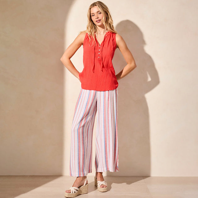 Tribal Clothing Co Sleveless Blouse with Button Placket-Poppy