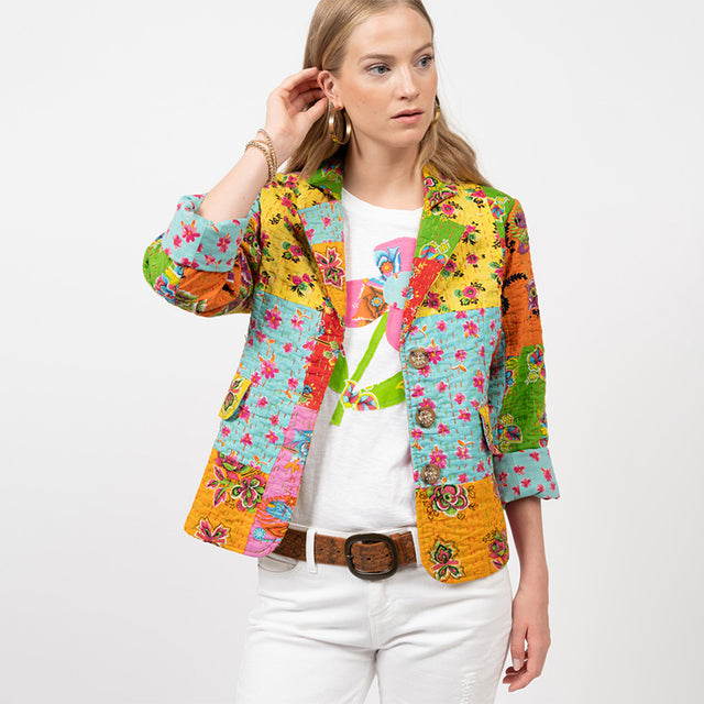 Ivy Jane Patchwork Blazer This blazer is expertly crafted with a striking mix of fabrics, creating a one-of-a-kind piece for your wardrobe. The different textures and patterns give off a sophisticated, yet approachable look, making it perfect for both professional and casual settings.