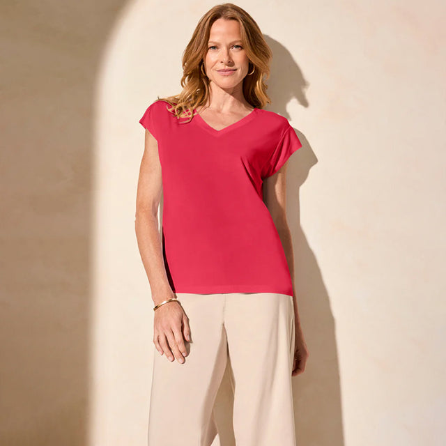 Tribal Clothing Co Cap Sleeve V Neck Top-Teaberry - S is backordered and will ship as soon as it is back in stock.
